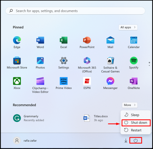 Чтобы выключить систему из Windows 11, нажмите клавишу «Окно», нажмите кнопку «Питание» и выберите опцию «Выключить»: