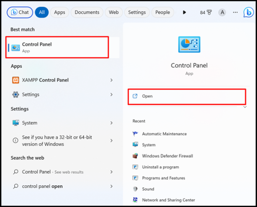 Сначала запустите встроенное приложение Windows «Панель управления» через меню «Пуск»: