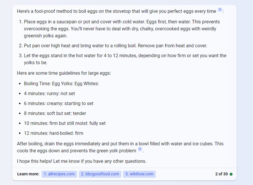 - Доступ к Интернету — главное преимущество Bing AI. Любой запрос, поданный в чат Bing AI, ищется и отображаются ответы. Предоставленные ответы всегда содержат самую свежую доступную информацию. Это делает Bing AI важным инструментом для исследователей, которым нужны передовые знания.