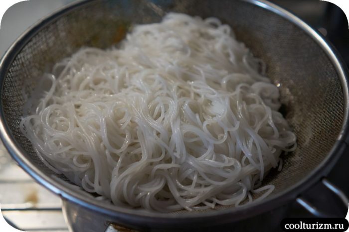 Лапшу отварить до состояния «аль-денте». Перед варкой её лучше сразу поломать на кусочки длиной около 4 см. Важно не переварить лапшу, она должна оставаться чуть твердоватой.