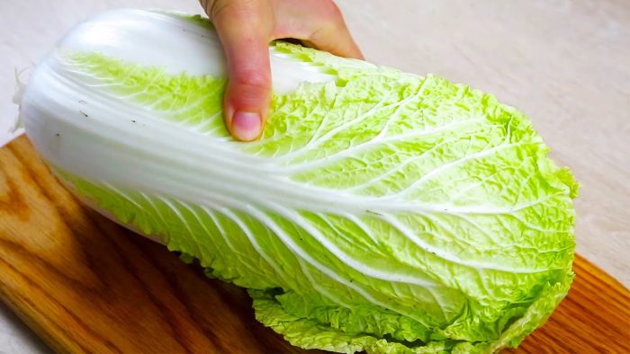 Листья пекинской капусты более нежные, чем у белокочанной. Поэтому этот овощ отлично подходит для приготовления голубцов. Если белокочанную капусту нужно отваривать, то листочки «пекинки» достаточно просто опустить на пару минут в кипяток, чтобы они стали эластичными и легко свернулись. Утолщения на капустных листьях нужно срезать. Читать