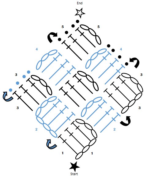 Схема для данной техники вязания: