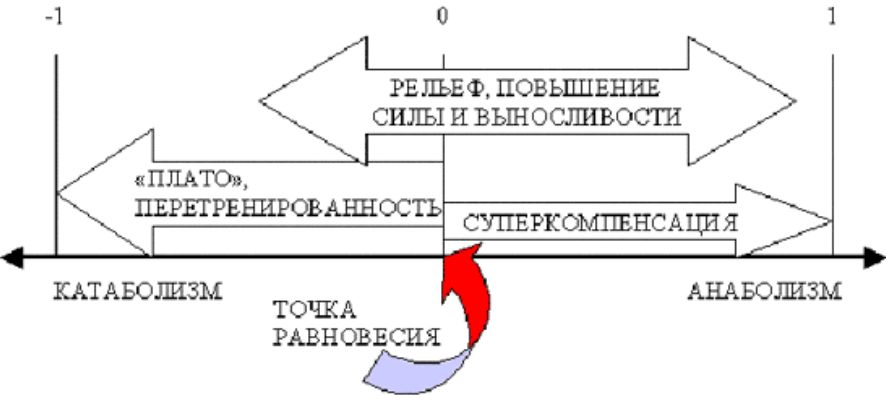 Катаболизм – это процесс получения энергии путем распада сложных молекул на простые элементы, т. е. энергетический обмен. Рост мышечной ткани – процесс анаболический, но он невозможен без усиленной работы мышц. Силовые тренировки – стрессовые затраты энергии, которые сопровождаются быстрым расщеплением не только питательных веществ, но и мышечной ткани. Задача культуриста – построить режим питания и физических нагрузок так, чтобы процессы анаболизма (роста мышц) преобладали над катаболизмом – разрушением мышечной ткани в ходе тренировок.