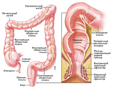 Далее пища поступает в толстую кишку, в которой происходит формирование кала, а слизистая органа всасывает воду и другие полезные микроэлементы. Заканчивается толстая кишка прямым отделом, сопряженным с анусом.