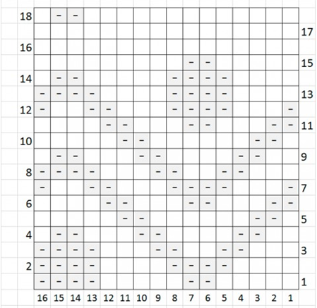 Далее 1 с1н в те же петлю, откуда выходит цепочка из 3 вп. Далее 1 с1н*4. В центральную верхушку с1н предыдущего ряда провяжите сразу 5 с1н. Далее 1 с1н*4. В следующую петлю провяжите 2 с1н. В этом ряду получается 17 с1н.