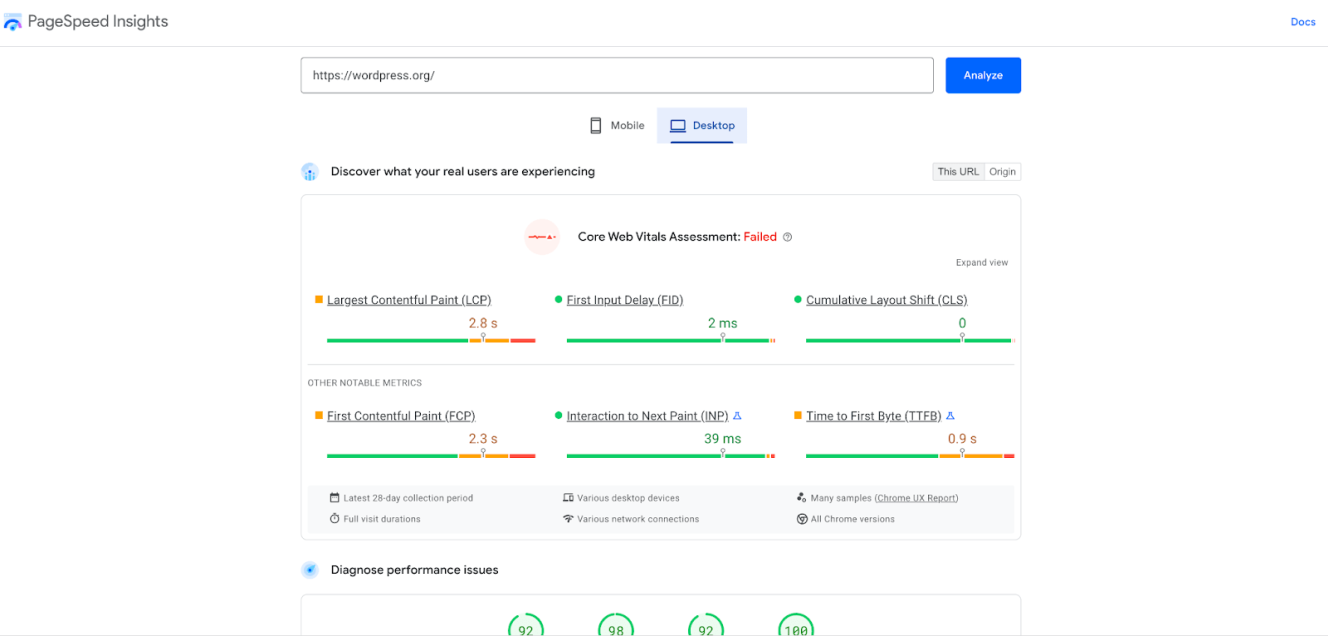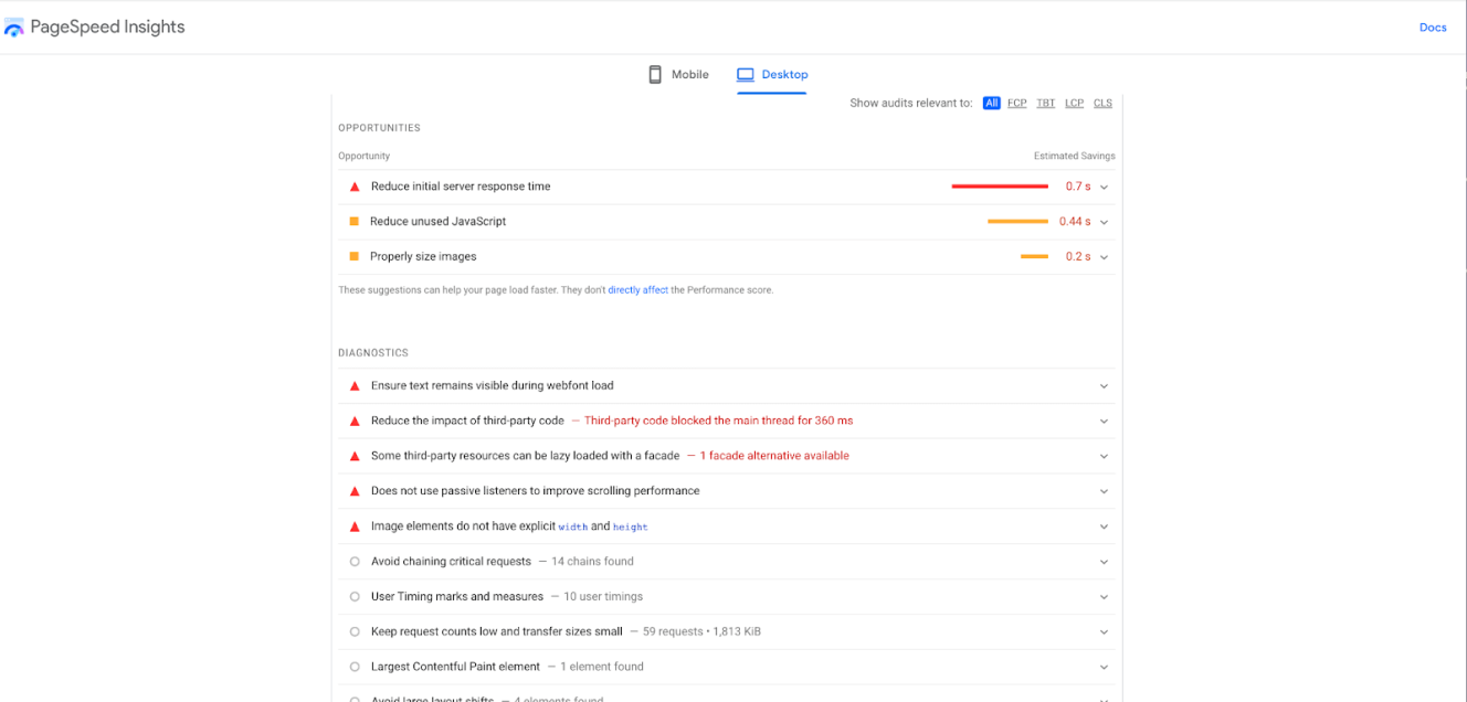 Первым шагом в измерении TTFB является использование инструмента тестирования скорости, такого как Google PageSpeed Insights или WebPageTest. Эти инструменты предоставят вам исчерпывающий отчет о производительности вашего веб-сайта, включая показатель TTFB.