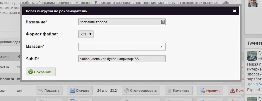 Пишите название выгрузки,выбираете магазин и в самом магазине выбираете товар который хотите расположить на партнерском магазине.Прописываете «Ай ди»,что-бы в статистике можно было посмотреть с какого магазина пришел заказ.