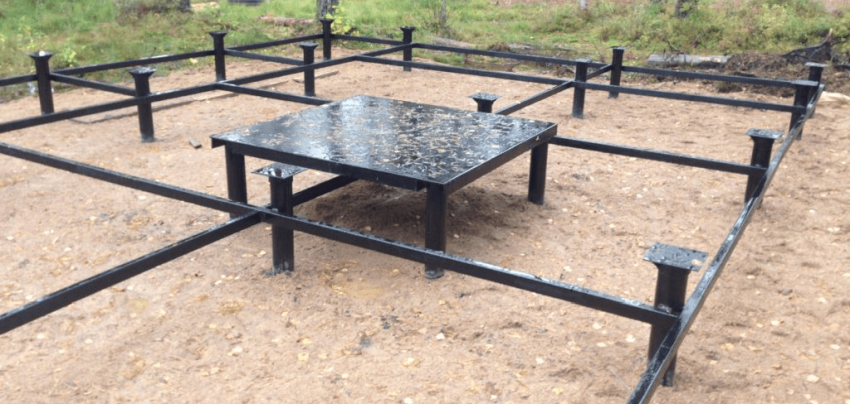 Если каркас поставлен на свайном или свайно-винтовом фундаменте, для печи выполняется аналогичный. Вместо ростверка по нему заливается бетонная плита основание.