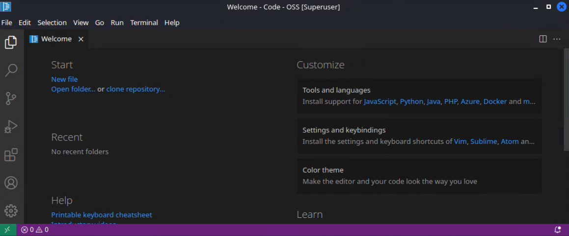 Также мы можем запустить команду code-oss из терминала, чтобы открыть его.