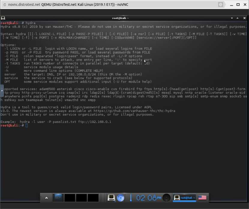 Если вы ищете интересный инструмент для взлома пары логин / пароль, Hydra будет одним из лучших предустановленных инструментов Kali Linux.