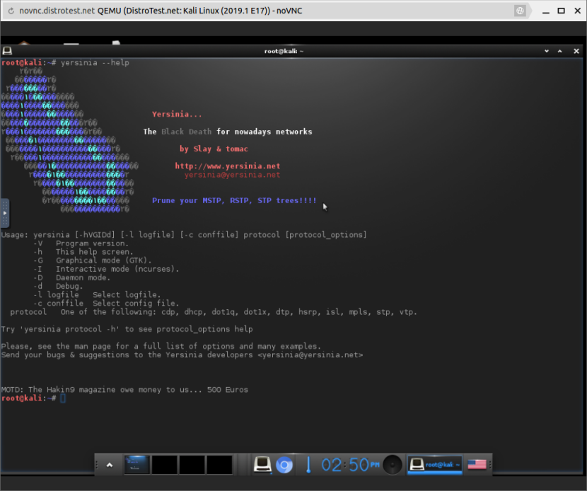 Yersinia – интересный фреймворк для выполнения атак на уровне 2 (уровень 2 относится к уровню канала передачи данных модели OSI) в сети.