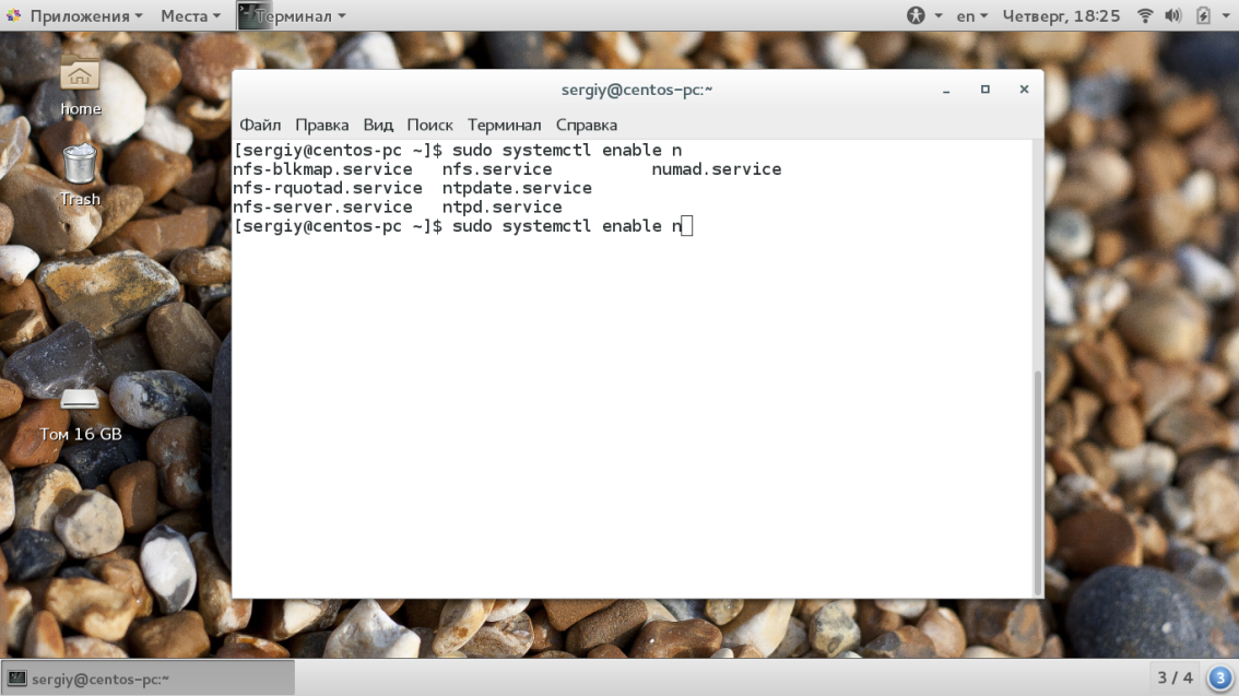 Если вы не знаете точное имя файла сервиса, но знаете его первую букву, то можно использовать автодополнение, как и в любом другом месте терминала с помощью кнопки Tab:
