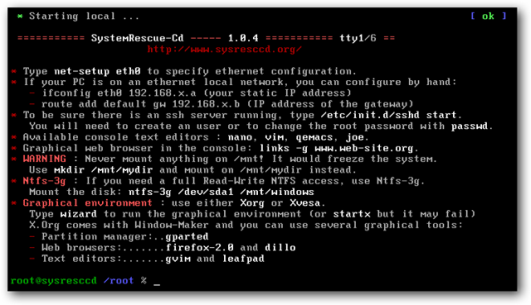 Загрузите компакт-диск System Rescue с sysresccd.org