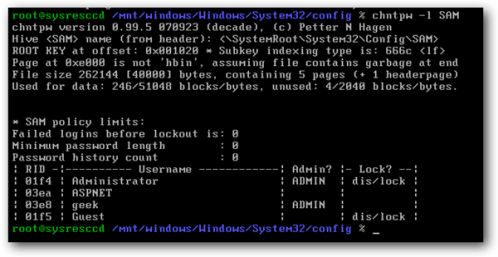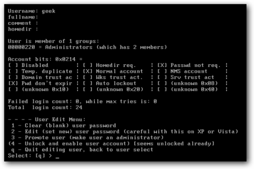 chntpw –u geek SAM