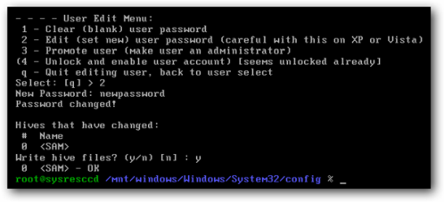 Я предполагаю, что вы хотите установить новый пароль, поэтому просто введите «2» в командной строке, добавьте свой пароль и не забудьте использовать клавишу «y» при появлении запроса на сохранение.