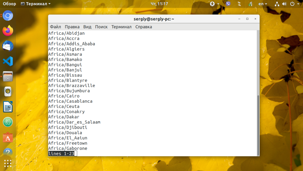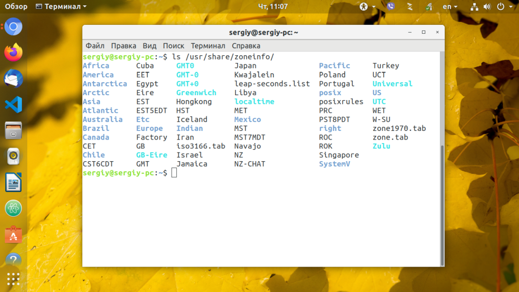 Для просмотра всех доступных временных зон выполните такую команду: