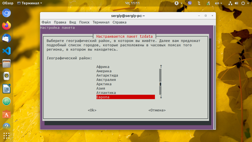 2. Настройка с помощью tzdata