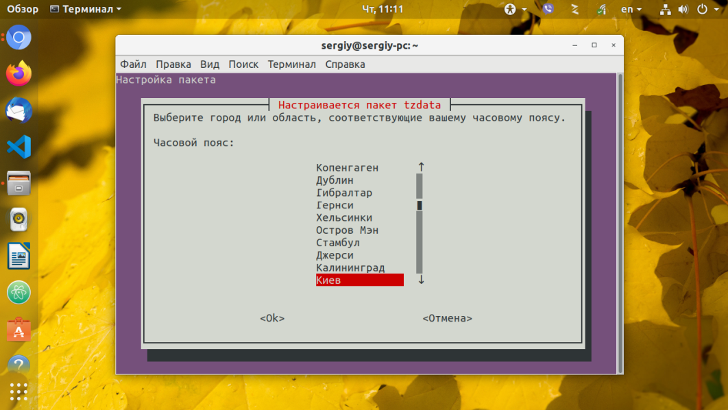 Для создания символической ссылки используйте команду ln -sf. Файл зоны нужно выбрать из доступных в системе. Например, мой часовой пояс — Украина, Киев, для установки будет использоваться следующая команда: