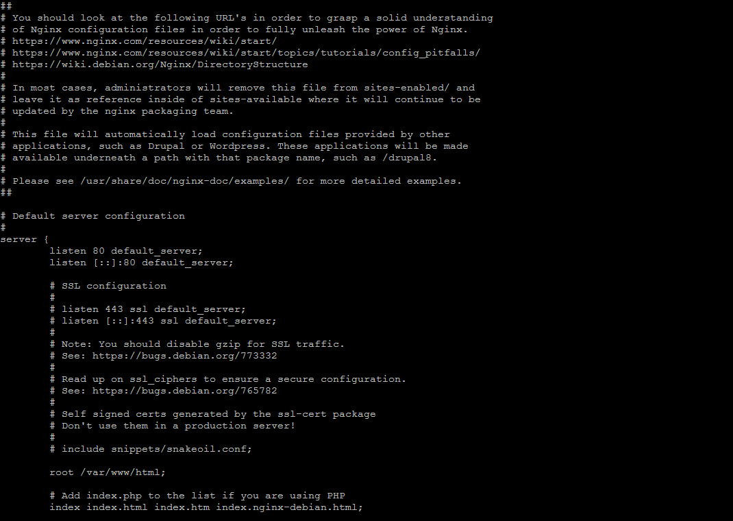На нашем сервере мы настроили несколько серверных блоков, по одному для каждого сайта в каталоге /etc/nginx/sites-available/<имя_домена>.