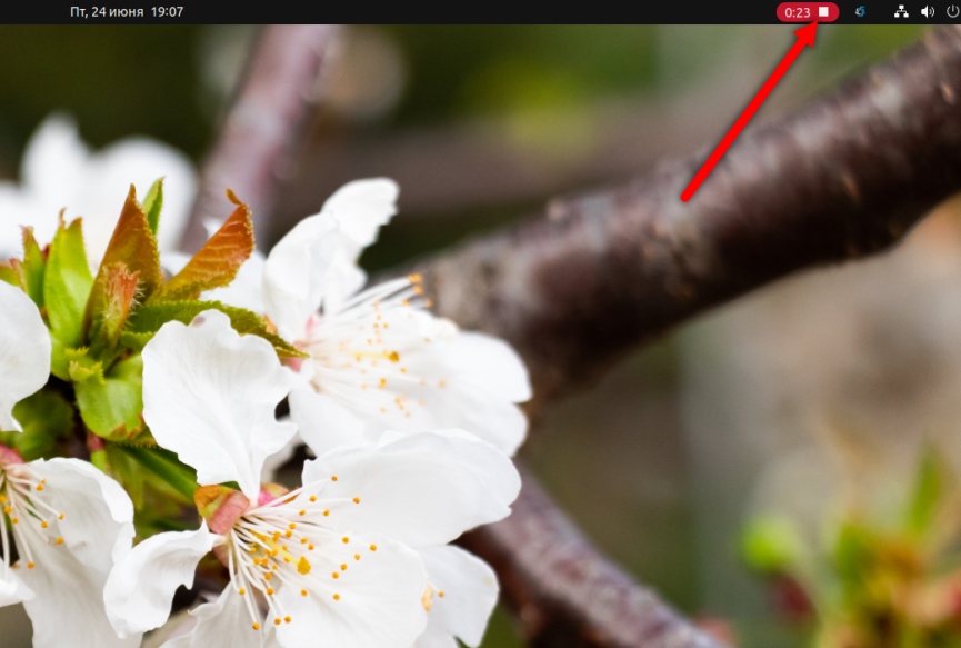 - В конце запись нужно остановить. Для этого кликните по иконке с красной точкой на панели инструментов в правом верхнем углу экрана.