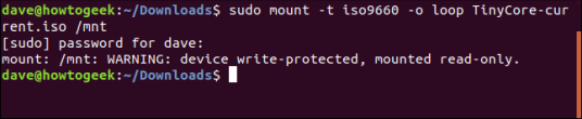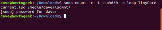 sudo mount -r -t iso9660 -o loop TinyCore-current.iso/media/dave/isomnt/