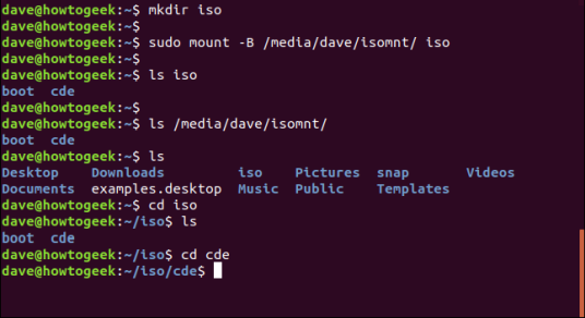 Вот работающий пример. Мы создадим каталог в нашем домашнем каталоге с именем iso . Затем мы свяжем точку монтирования ISO-образа /media/dave/isomnt с новым каталогом iso в нашем домашнем каталоге.