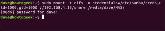 sudo mount -t cifs -o учетные данные =/etc/samba/creds, uid = 1000, gid = 1000 //192.168.4.13/share/media/dave/NAS