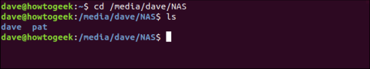 Получая доступ к нашей точке монтирования в /media/dave/NAS , мы получаем доступ к общему каталогу на Raspberry Pi по всей сети. Мы видим две папки на Raspberry Pi, которые называются dave и pat .