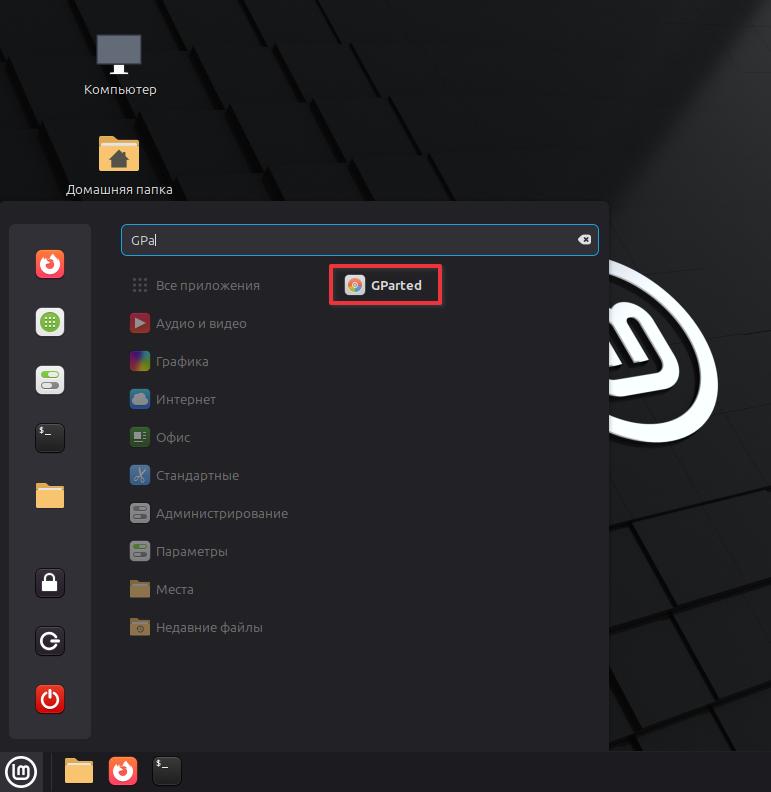 Установка программы GParted
