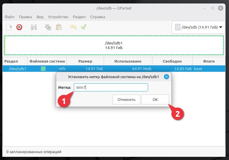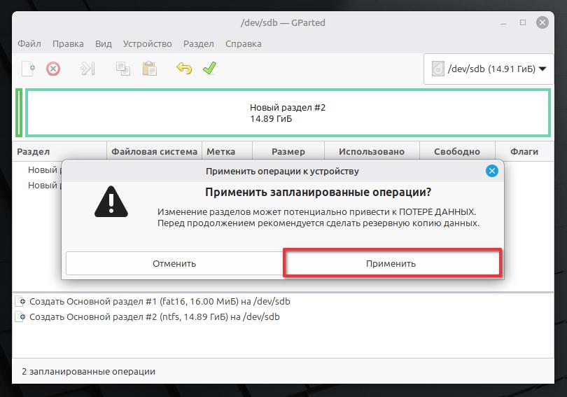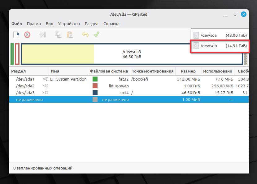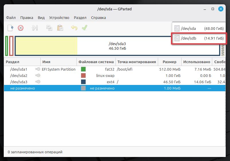 Выбираем dev/sdb.