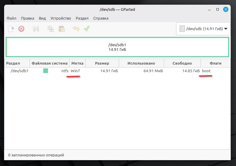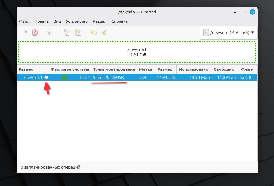 Диск dev/sdb – это наша флешка. Запоминаем!