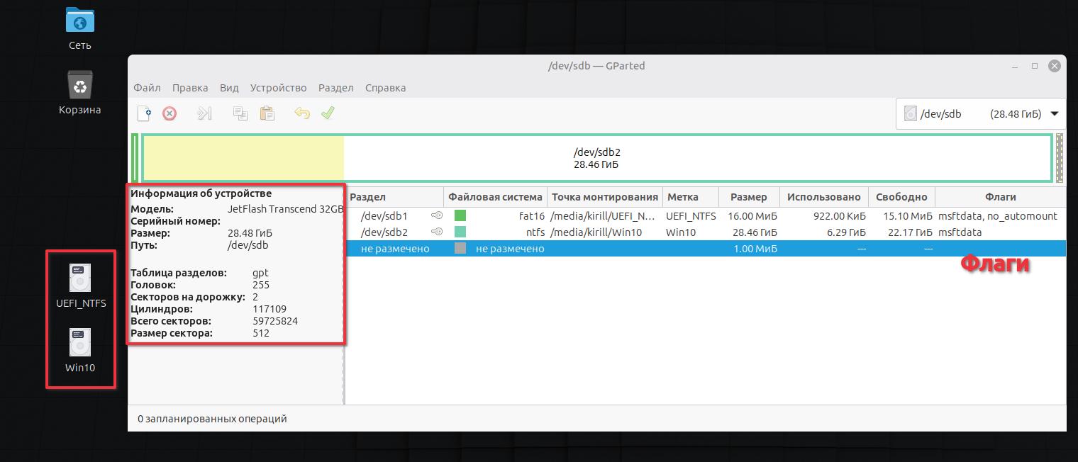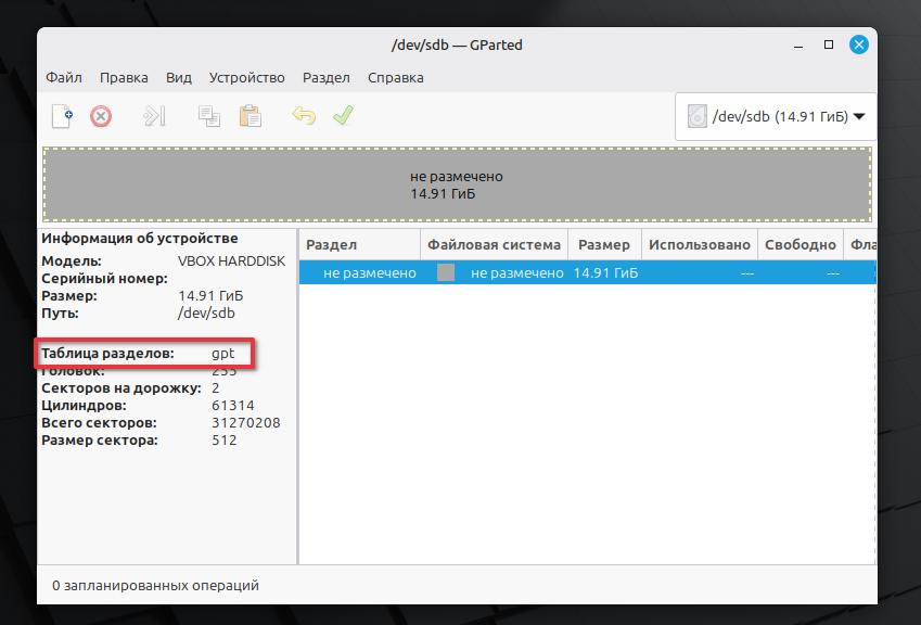 Проверим информацию об устройстве. Порядок. Таблица разделов GPT.