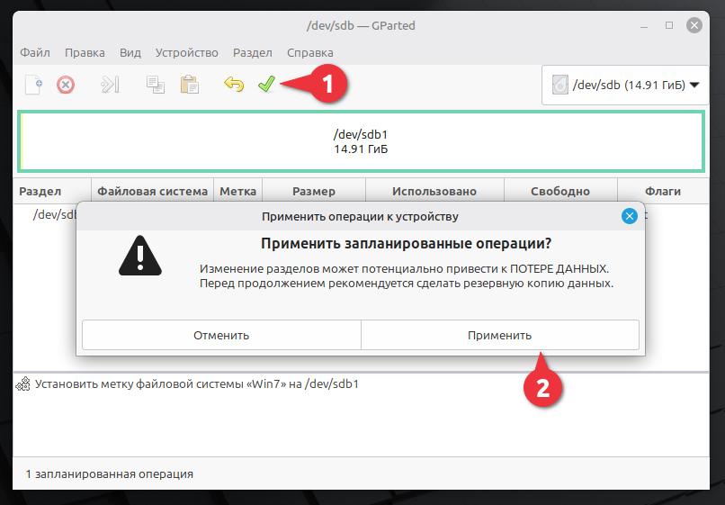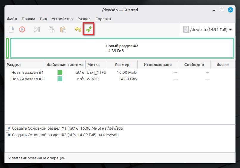После создания разделов, нужно применить изменения. нажимаем ✅