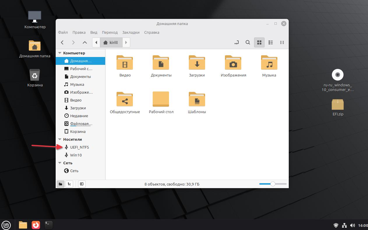 Переходим в раздел флешки UEFI_NTFS.