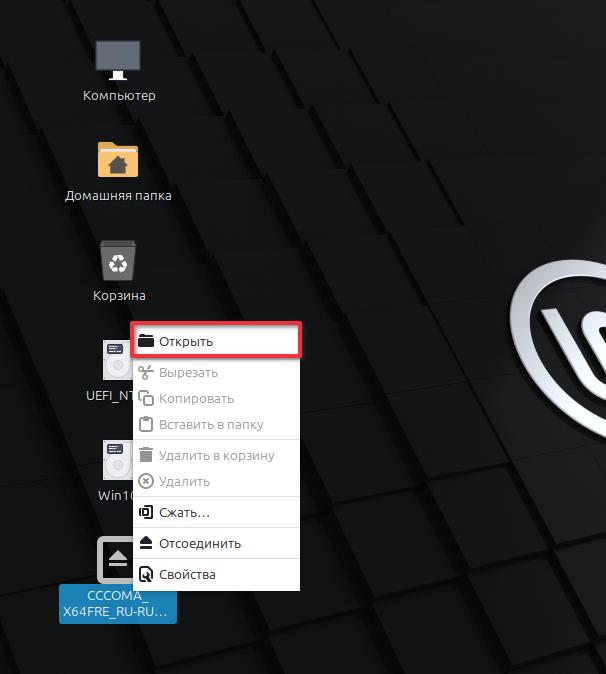 Отрываем образ с Windows 10. Нажимаем правой мыши по смонтированному образу. Нажимаем Открыть.