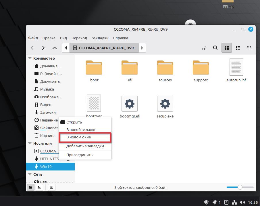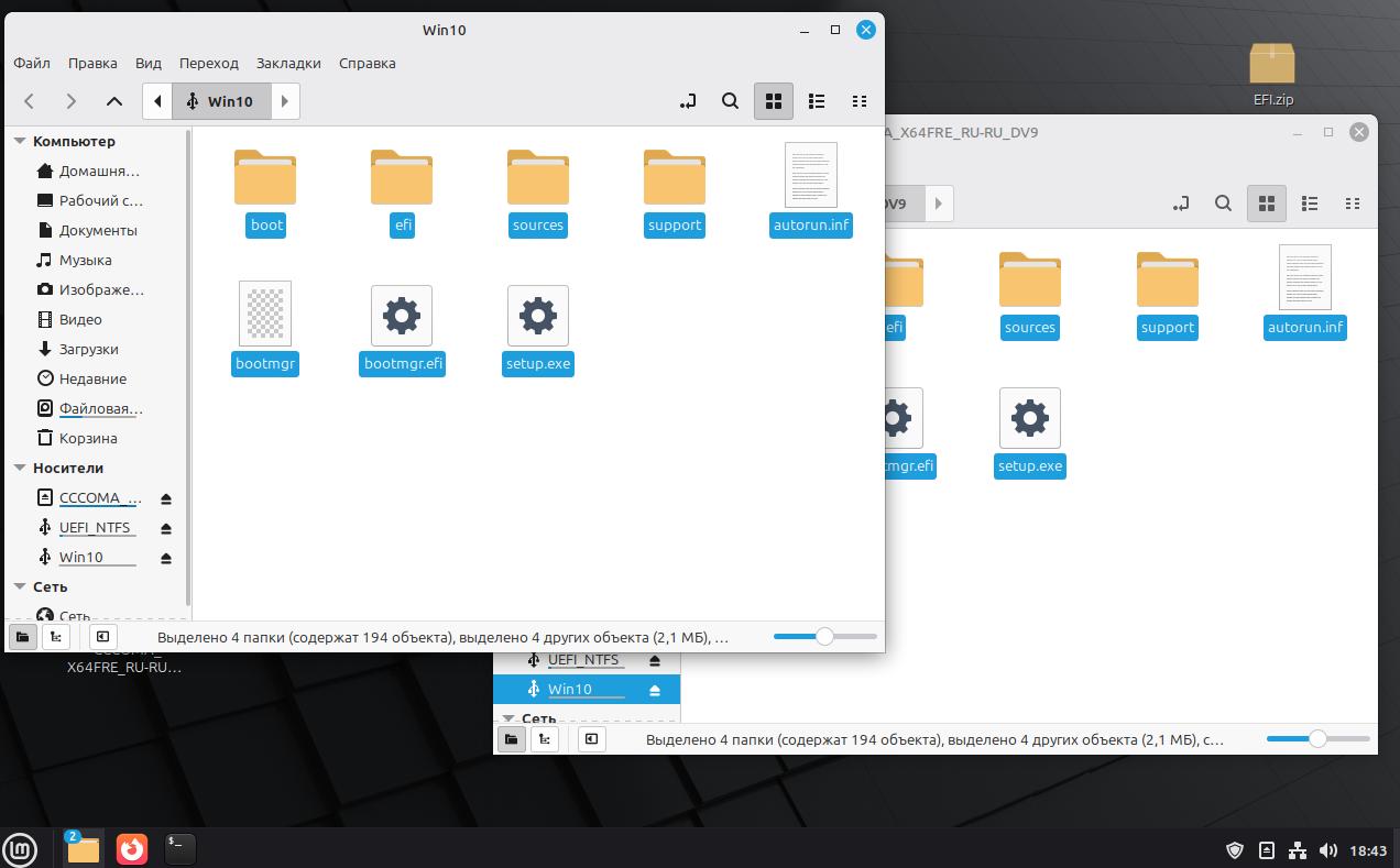 Выделяем все файлы в образе, копируем их на раздел Win10 на нашей флешке.