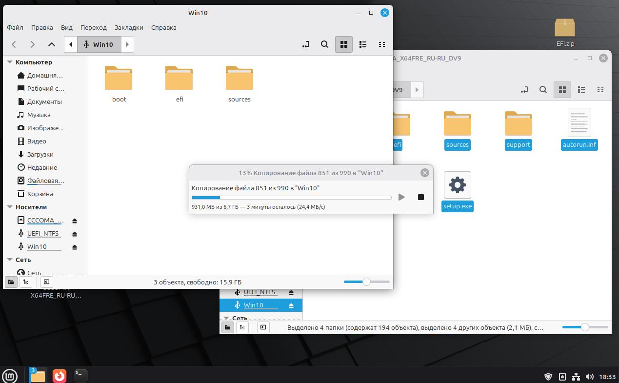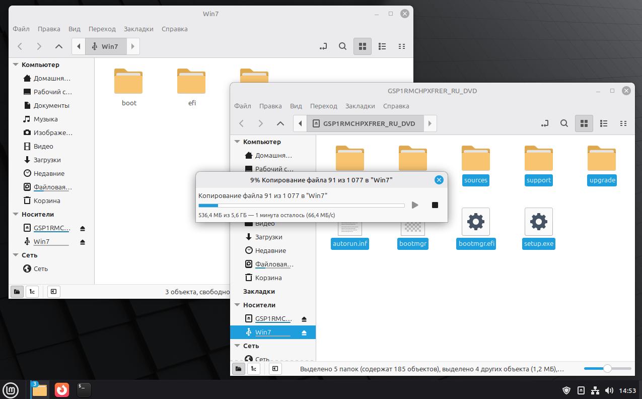 Теперь наша загрузочная флешка с Windows готова. И вы сможете делать это в Linux легко и просто.