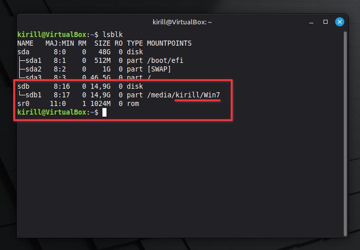 lsblkНаша флешка sdb