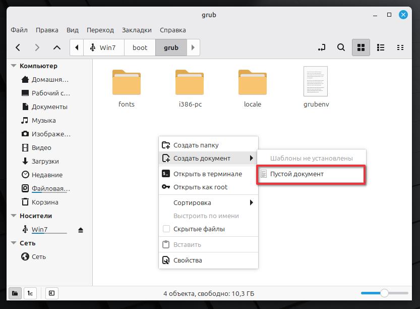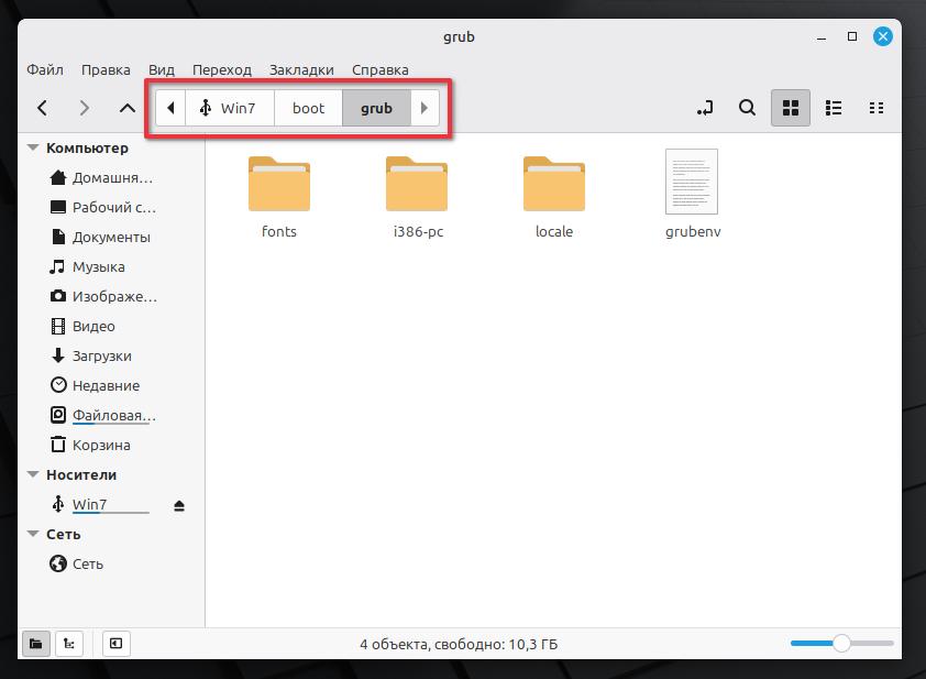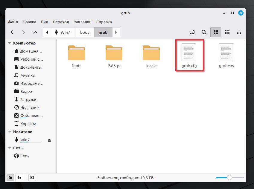 Переходим в директорию (папку) boot/grub на нашу флешку.