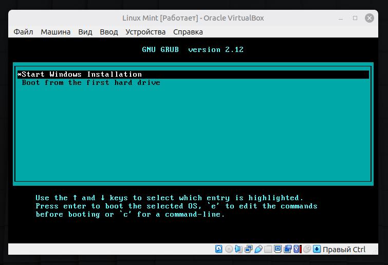 Выбираем первый пункт в меню Start Windows Installation.