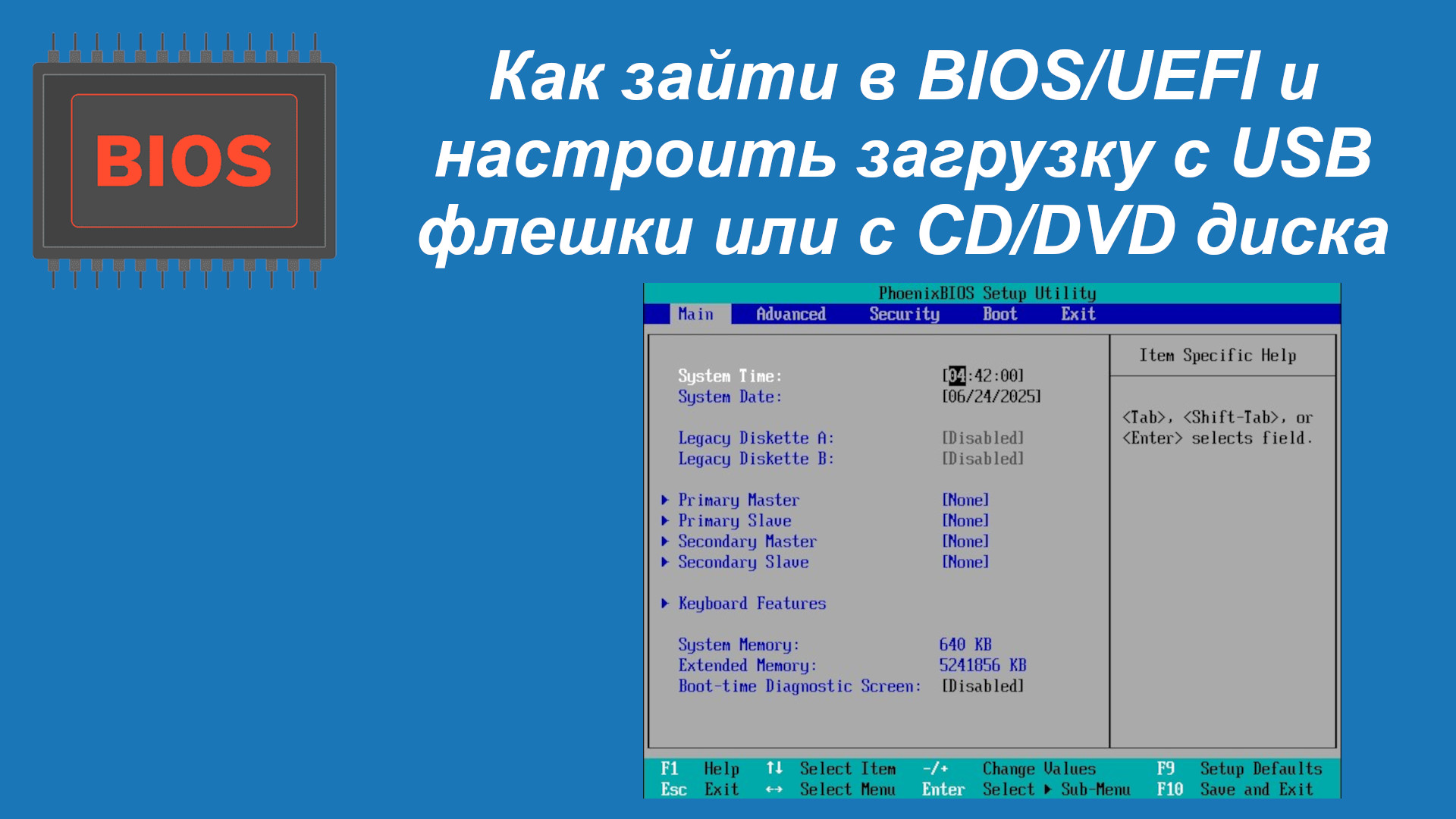 Теперь давайте загрузимся с флешки. Заходим в BIOS, нажимаем соответствующую клавишу.
