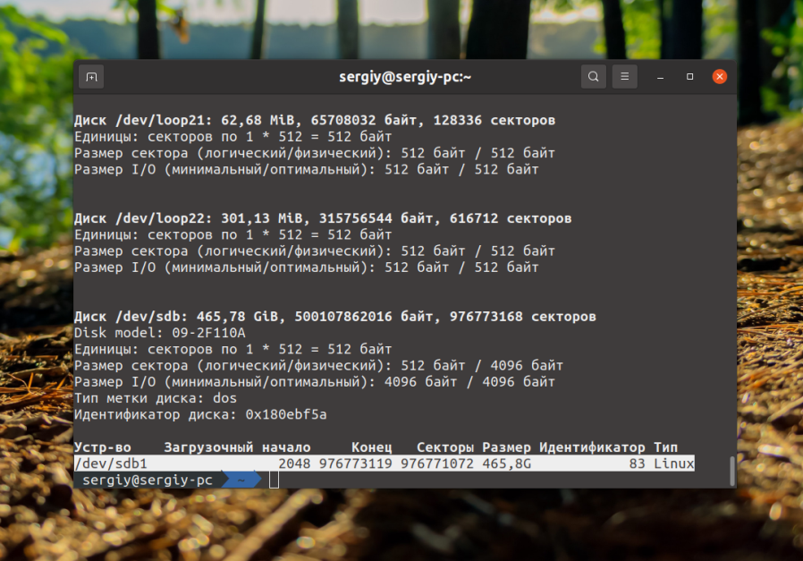 Теперь запустите утилиту и передайте ей в параметре имя диска, на котором расположен этот раздел. Команду надо выполнять от имени суперпользователя: