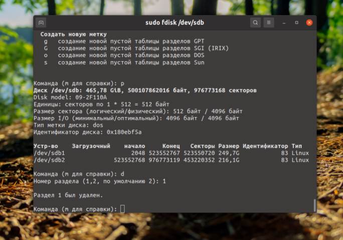 Как удалить разделы на диске Linux