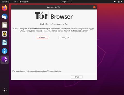 Браузер Tor можно запустить либо из командной строки, набрав torbrowser-launcher либо щелкнув значок Tor Browser Launcher (Действия -> Браузер Tor).