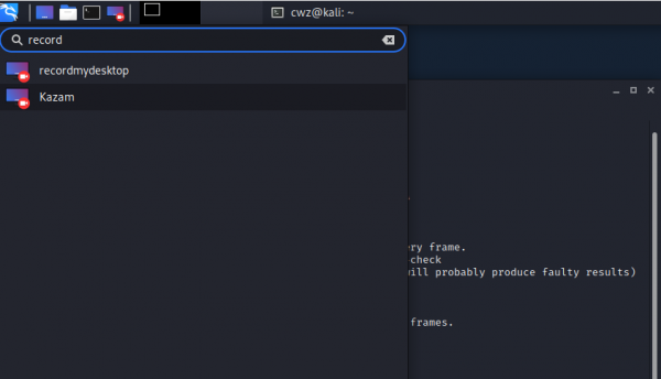 Опция записи рабочего стола в Kali Linux