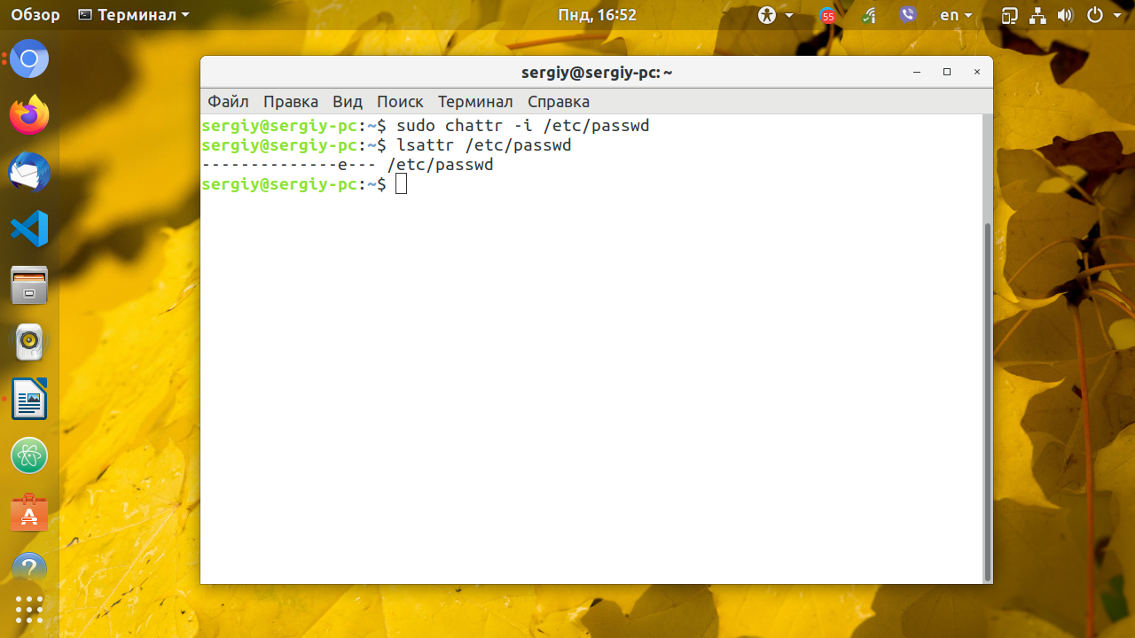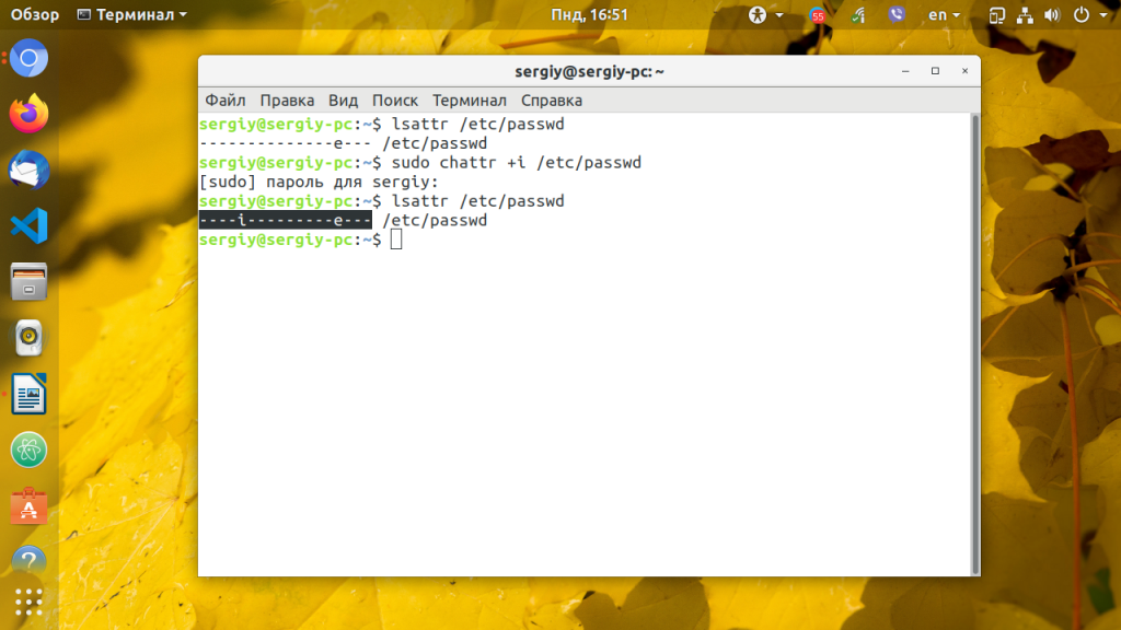 Теперь файл неизменяемый, и ни один пользователь не сможет его изменить. И более того, даже суперпользователь не сможет модифицировать, перезаписать или удалить этот файл. Перед тем как что либо делать с этим файлом нужно отключить атрибут.