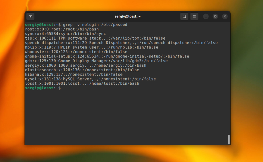 Команда grep Linux может быть использована для поиска строк, которые не содержат указанное слово. Например, так можно вывести только те строки, которые не содержат слово nologin: