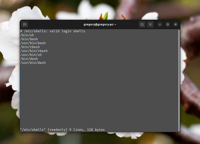 Просмотреть весь список доступных в системе оболочек получится в файле /etc/shells. Откройте его в редакторе vi: