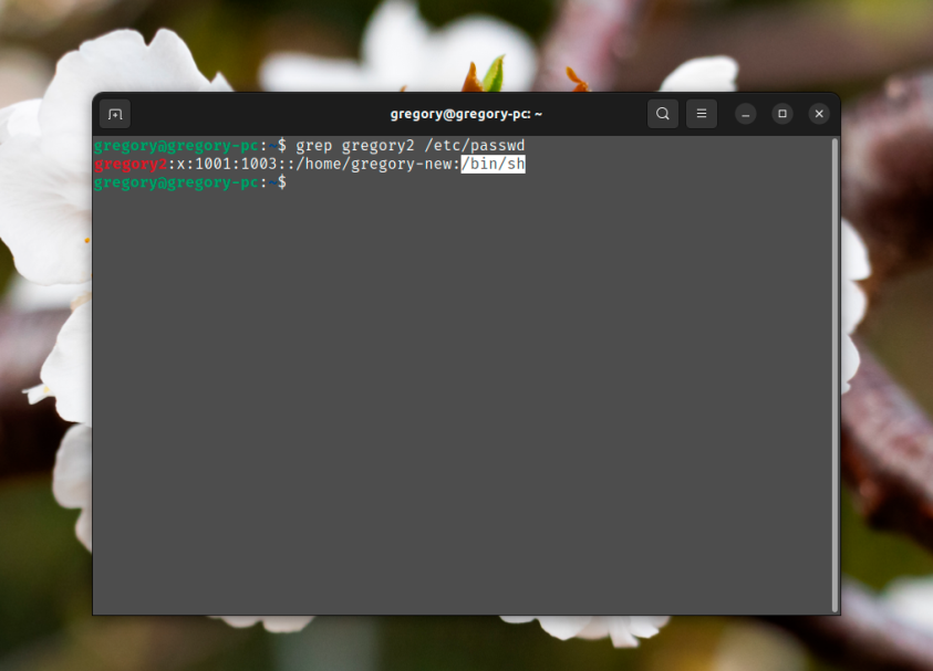 Ну а еще вы можете использовать эту команду вместе с перенесением домашней папки, например, в /home/gregory3: