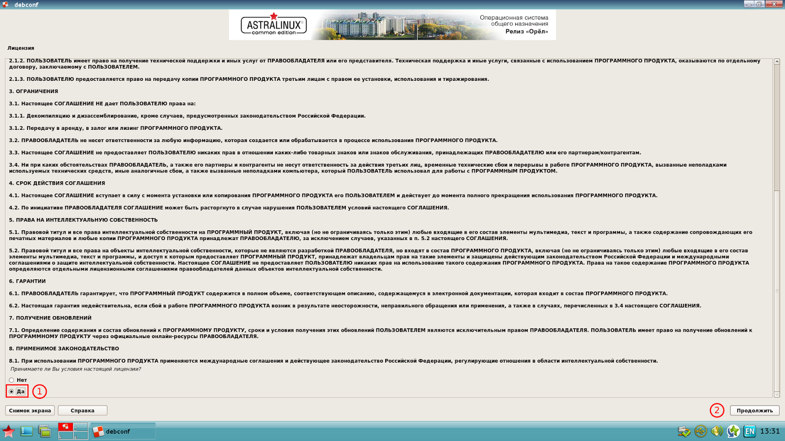 А далее в Debian-установщике нужно указать/подтвердить язык системы.